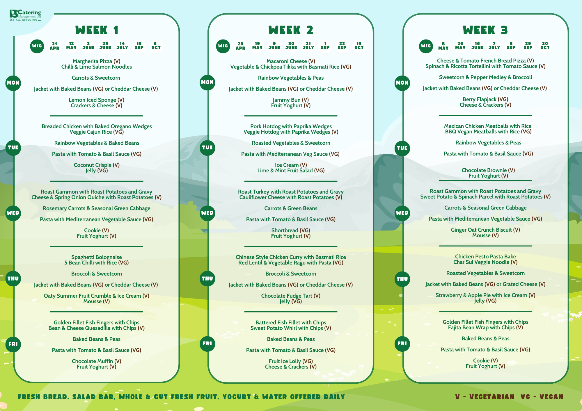 At Auriol we believe that a healthy balanced diet plays a huge part in our children's ability to arrive in the classroom ready to learn. Our new caterers, PS Catering will be providing a varied menu each week, the current menu is available to download at the bottom of this page. Please note that we do not offer Halal - your child would need to be registered as vegetarian. You will also see menu's for other special dietary requirements here on this page. Further information is provided on PS Catering website Paula Scott Catering Management (pscateringmanagement.co.uk).